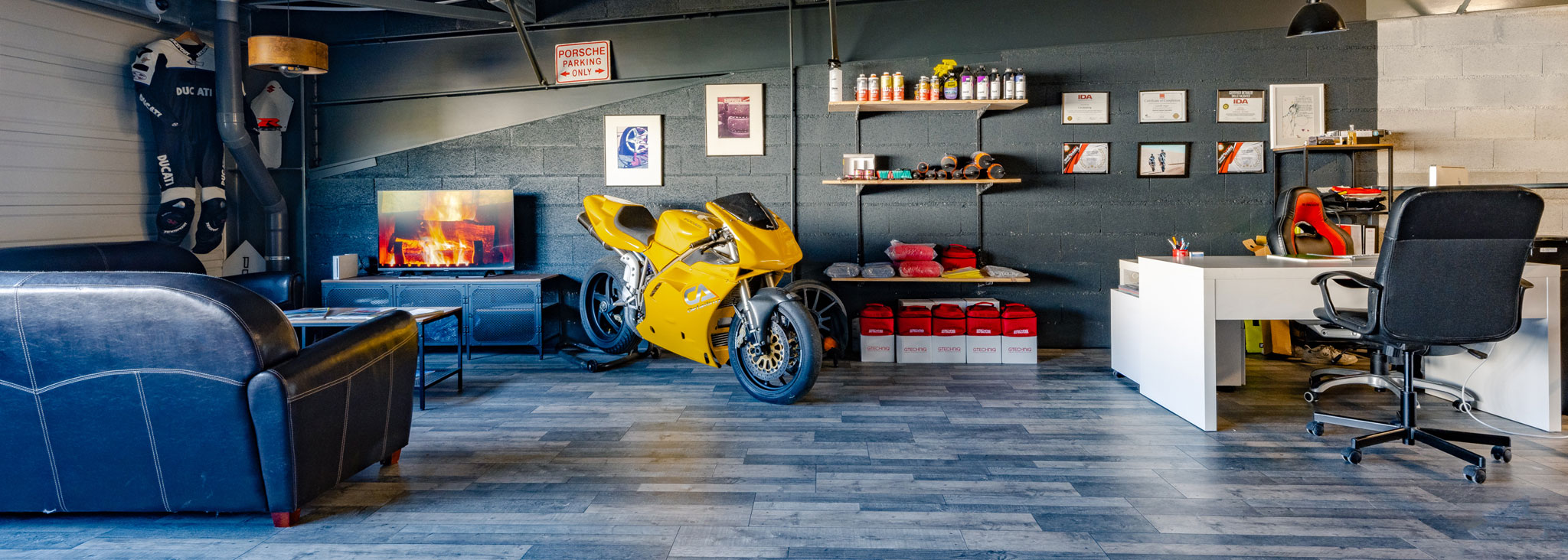 CA Detailing à créé un atelier 100% dédié au Detailing et à la pose de traitements sans poussière, avec une température maîtrisée et un éclairage haute performance. Une boutique de produits d’entretien spécialisés est également à votre disposition. Pour vous accueillir dans les meilleures conditions, CA Detailing vous propose un salon privé agréable et confortable ainsi qu’un parking privé et sécurisé.